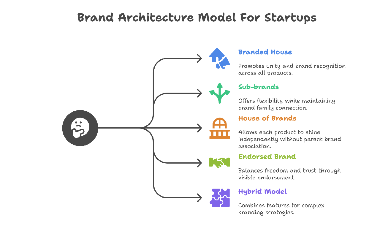 Sub-brands are part of the main brand but feel separate. They have their own names, identity, or style but stay connected. This model works when each product has a special purpose. It offers more freedom while still keeping the brand family strong. Startups growing into new markets often use this approach best.