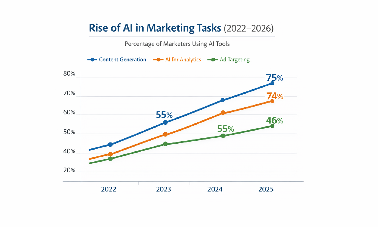 In 2025, generative AI stopped being a side tool and became embedded in the marketing workflow itself. What began as copy assistance and creative generation evolved into AI-led media buying, audience segmentation, analytics, and reporting. Marketers stopped debating whether to use AI and instead focused on defining where human judgment was still essential. This shift fundamentally changed operating models across teams. As a result, 2026 marketing strategies are built on AI as an underlying system, not a feature.